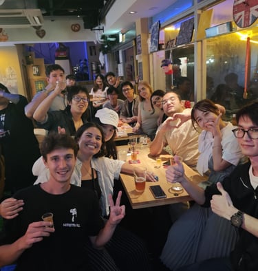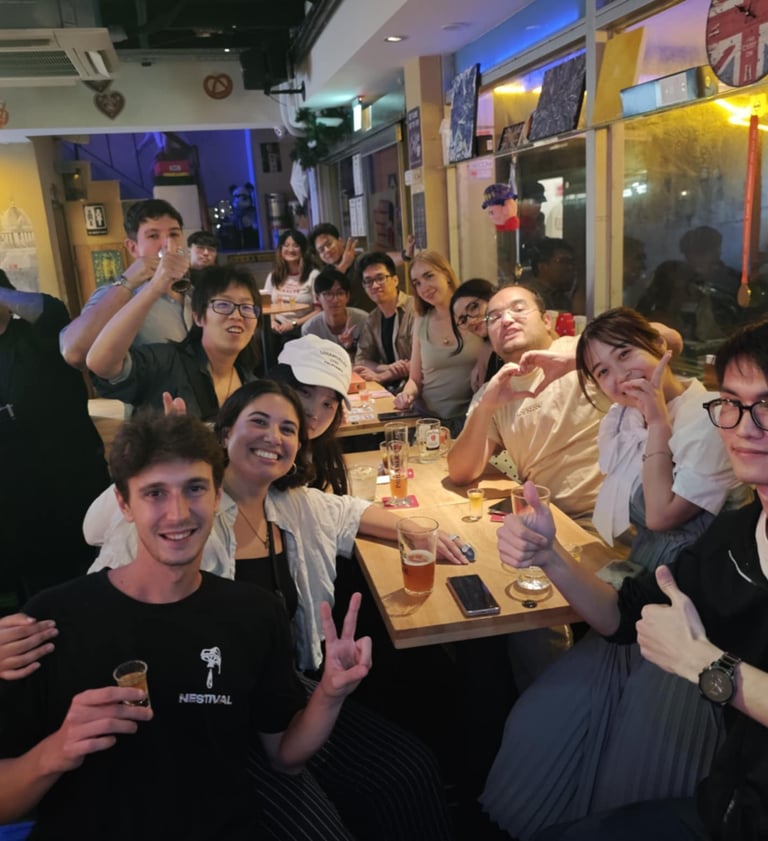 arrive alone. Host Yi ensures you’re introduced and feel right at home.🛋️ Cozy Living Room: Relax on comfortable sofas with chill beats—perfect for real conversations.